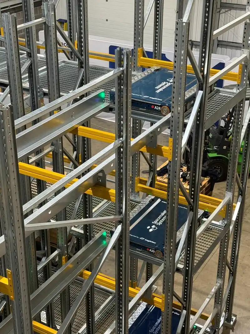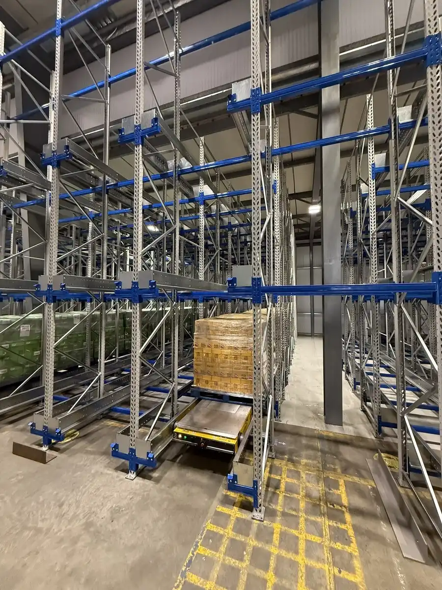 The business also benefited from faster pallet handling, reduced forklift damage, improved safety, and lower energy cost per pallet stored.