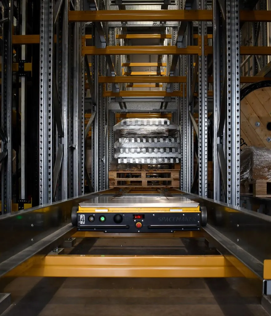 Spacemaker’s product line extends from the DualAxis JR®, an entry-level shuttle for lighter loads, to the QuadAxis Pro®, an advanced two-dimensional system with elevator integration for automated multi-level racking. Combined with the Spacemaker Software Suite, including MGM, MultiWare Manager, and 3DWare, operators gain full control over shuttle coordination, performance analytics, and digital visualization.